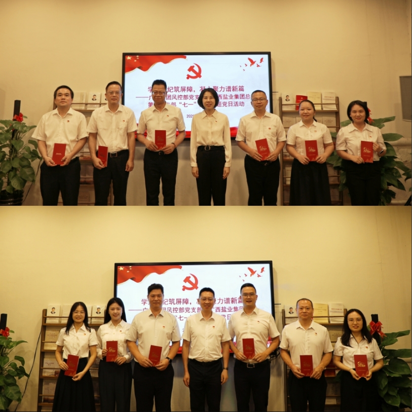 7月12日,廣投集團(tuán)風(fēng)控部黨支部與廣西鹽業(yè)集團(tuán)第二黨支部聯(lián)合開(kāi)展“七一”主題黨日活動(dòng)暨深入貫徹中央八項(xiàng)規(guī)定精神學(xué)習(xí)教育專題黨課。集團(tuán)黨委委員、副總經(jīng)理彭湖,兩個(gè)黨支部約40名黨員參加活動(dòng)。