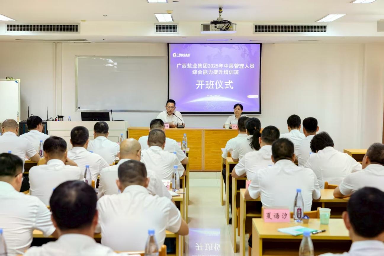 為深入貫徹落實(shí)新時(shí)代人才工作要求,進(jìn)一步提升中層管理人員綜合管理能力與履職水平,打造高素質(zhì)管理團(tuán)隊(duì),7月15日-18日,廣西鹽業(yè)集團(tuán)在中共廣西區(qū)委黨校舉辦2025年中層管理人員綜合能力提升培訓(xùn)班。集團(tuán)總部各部室及所屬企業(yè)中層管理人員、人才工程培養(yǎng)對(duì)象、新提拔干部等50余人參訓(xùn)。集團(tuán)黨委書(shū)記、董事長(zhǎng)邱潮涌出席開(kāi)班式并作動(dòng)員講話。