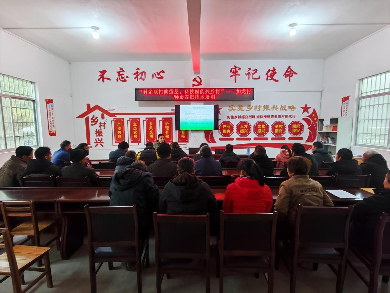 1月22日,加龍村舉辦了種桑養(yǎng)蠶技術(shù)培訓(xùn)會(huì)。來(lái)自河池市農(nóng)業(yè)科學(xué)研究所的專家團(tuán)隊(duì)走進(jìn)村里,圍繞桑樹種植、養(yǎng)蠶管理等實(shí)際問(wèn)題,為村民進(jìn)行現(xiàn)場(chǎng)講解和指導(dǎo)。
