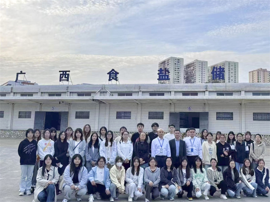 本次研學地點設在集團所屬南寧分公司。南寧分公司黨支部書記、總經(jīng)理范高敏對各位師生的到來表示熱烈歡迎,并為大家上了一堂精彩的食鹽知識課,重點講述了國家食鹽相關政策,并介紹集團所推出的雪花鹽、低鈉鹽、零添加系列鹽品等主推產(chǎn)品。隨后,范高敏帶領大家前往廣西食鹽儲備中心進行參觀。他表示,廣西鹽業(yè)集團作為國家食鹽儲備的重要基地,承擔著保障食鹽安全的重大社會責任,多年來為廣大人民群眾提供了堅實保障,并向大家展示了儲備中心的先進設施和倉儲管理場景,大家表示出極大興趣,積極提問互動。