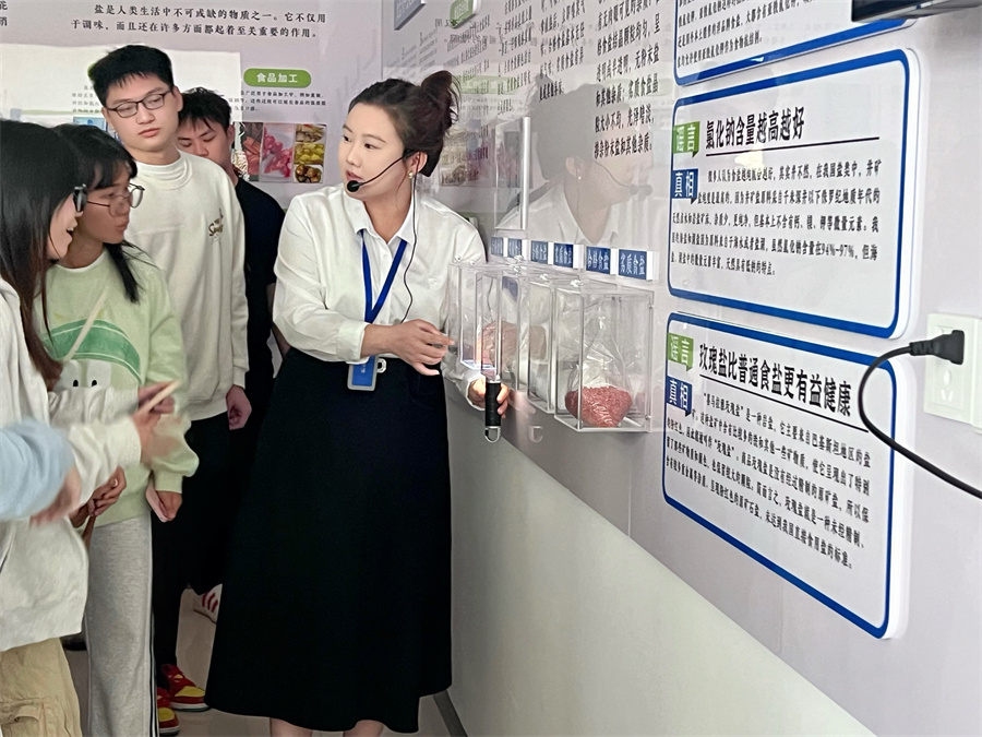 最后,南寧分公司工作人員帶領大家參觀食鹽科普驛站,并呈現(xiàn)了一堂有趣的食鹽科普課。課程介紹了中國鹽業(yè)的發(fā)展歷史、食鹽分類、生產(chǎn)工藝流程,以及食鹽加碘、鹽品選購等專業(yè)知識?,F(xiàn)場展示了如何辨別合格食鹽,提示食鹽相關誤區(qū),以及食鹽在日常生活中的巧妙運用等實用信息。課堂妙趣橫生、通俗易懂,大家聽得津津有味,與工作人員積極互動,現(xiàn)場氛圍十分活躍。