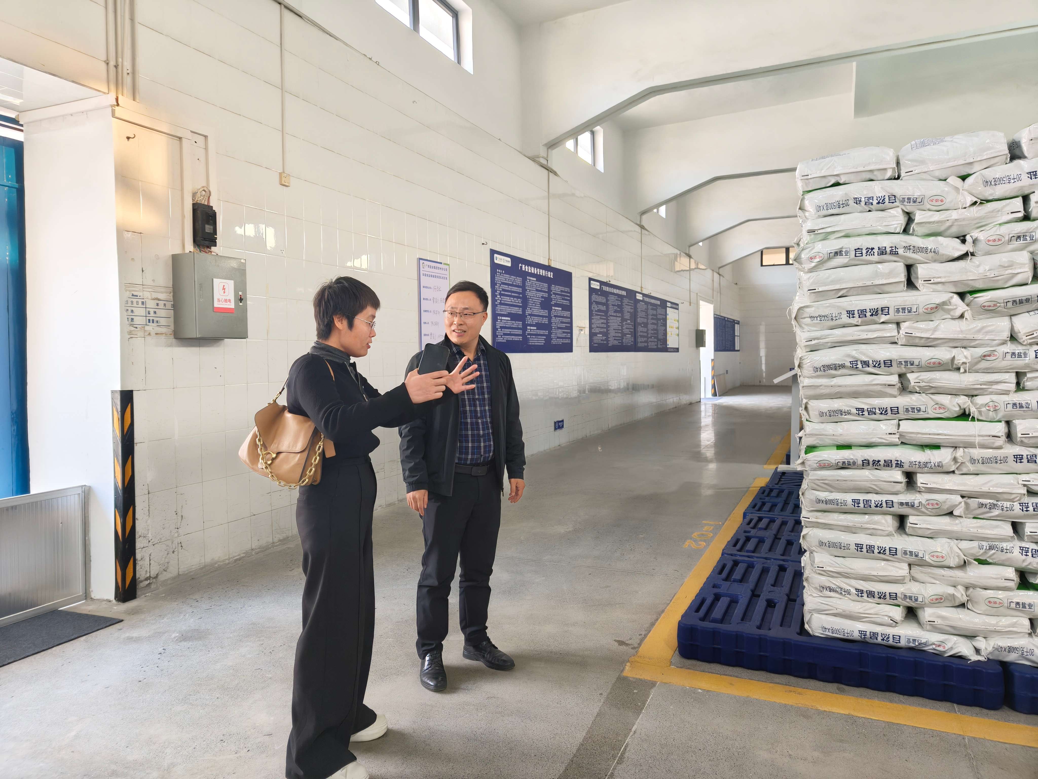 在倉庫現(xiàn)場,調(diào)研組詳細(xì)詢問倉庫容量、儲備設(shè)施配置、衛(wèi)生管理及質(zhì)量保障體系等關(guān)鍵環(huán)節(jié)。當(dāng)了解到賀州分公司嚴(yán)格遵循自治區(qū)食鹽儲備標(biāo)準(zhǔn),保障儲備庫容以及定期抽檢機(jī)制時(shí),調(diào)研組對分公司“高標(biāo)準(zhǔn)、嚴(yán)要求”的儲備管理模式表示充分肯定。